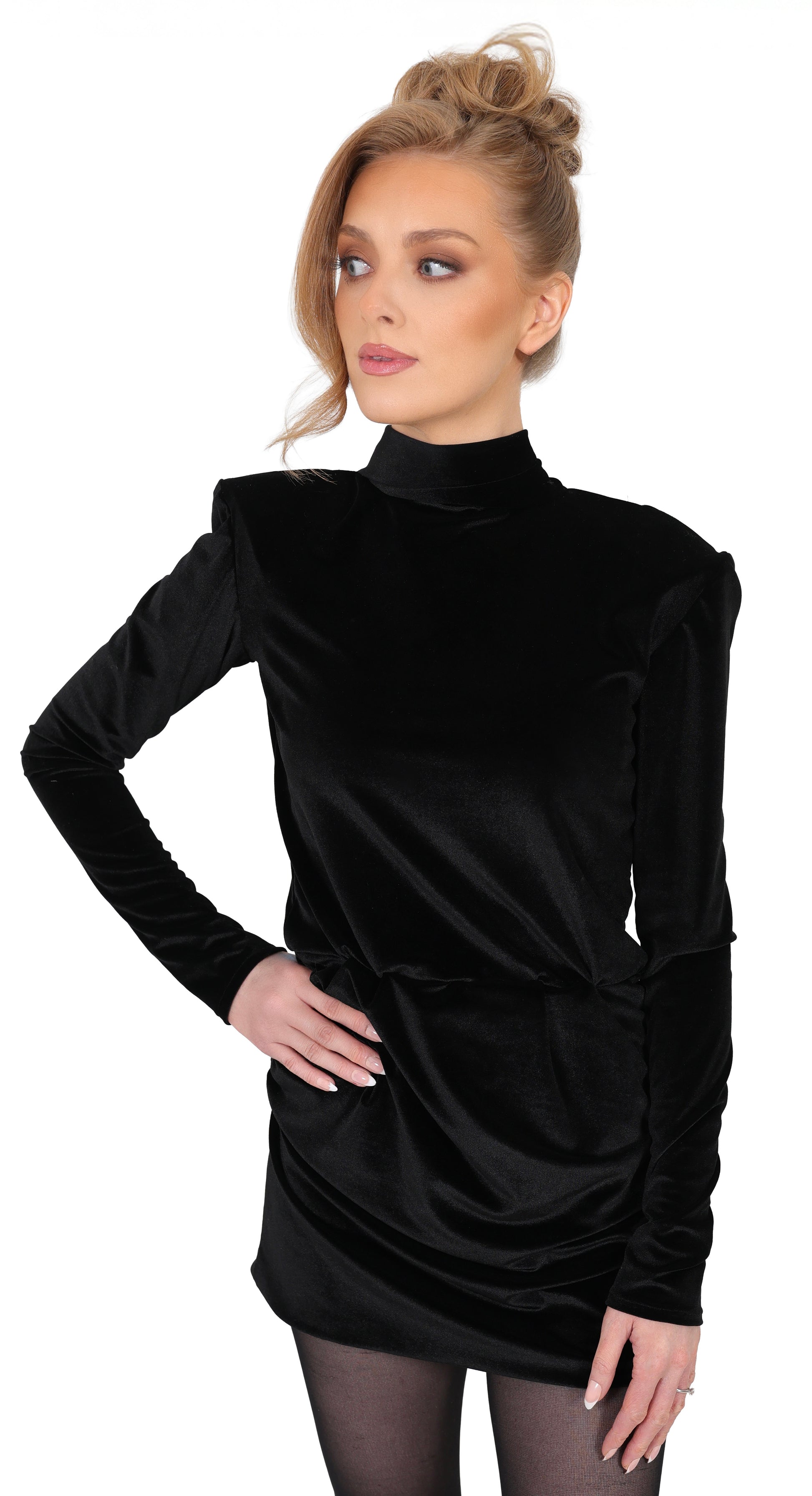 Meet your new go to dress Adelia – the classic velvet mini that does it all. With a ruched side detail and a long drape neckline, this timeless piece flatters every figure. Available in multiple festive shades, it’s your go-to for Christmas parties, holiday nights, and every sparkling occasion in between.